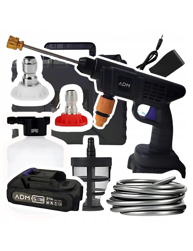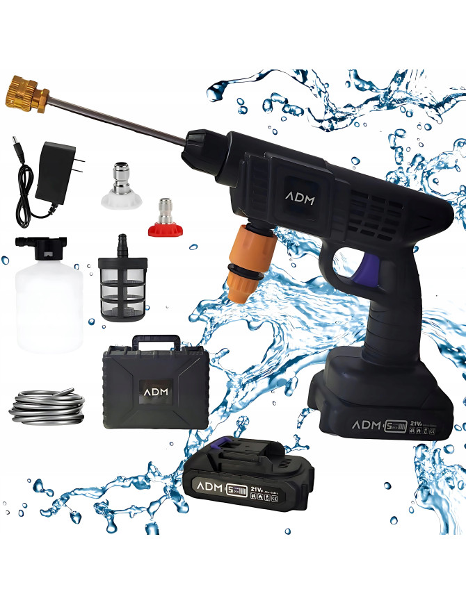 Myjka ciśnieniowa 30 BAR mocna mini ADM Bezprzewodowa + 2 baterie CZARNA