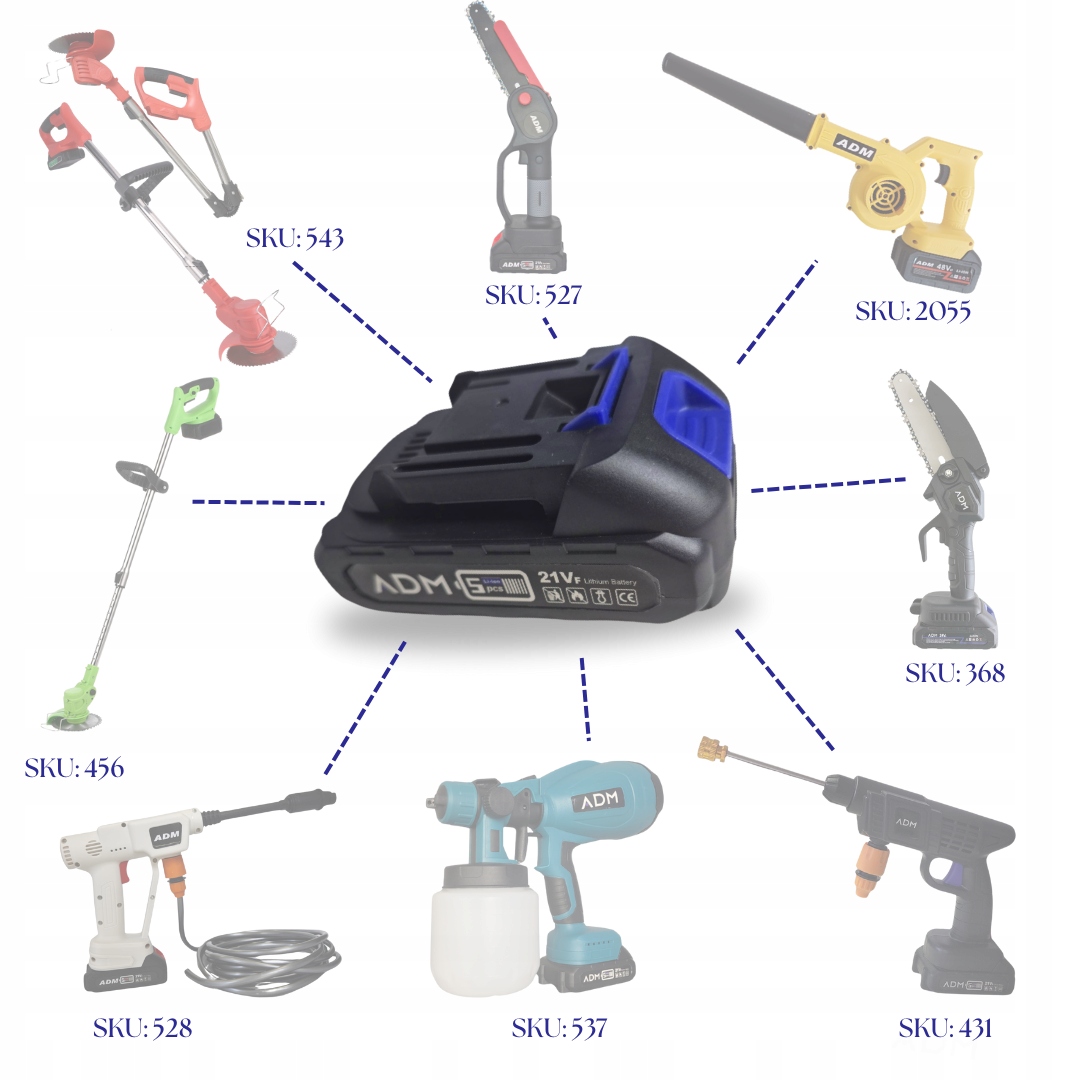 Pozostań w pełni naładowany i gotowy do pracy dzięki naszemu wydajnemu akumulatorowi litowo-jonowemu – dostępnemu w wersji 21V. Niezależnie od tego, czy przycinasz gałęzie, tnąc drewno, czy myjesz pod ciśnieniem, ten akumulator zasili Twoje narzędzia ADM bez przerw. Idealny jako zapas lub podstawowe źródło energii.