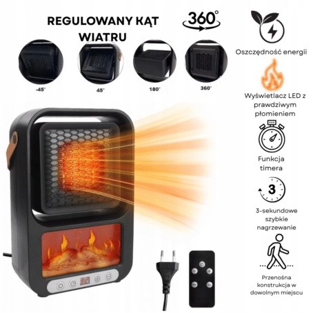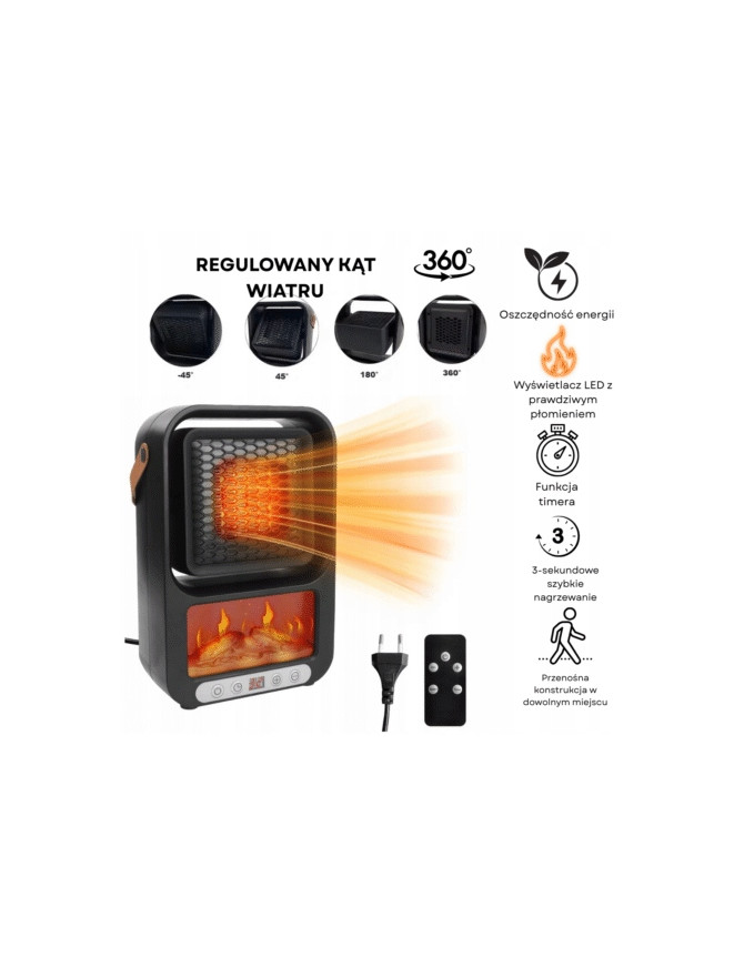 - 1 × Przenośny wentylator elektryczny z efektem kominka LED