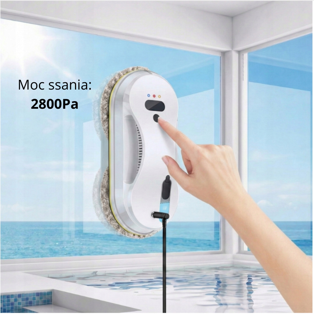 - Moc ssania 2800Pa zapewnia stabilne i bezpieczne przyleganie do powierzchni szklanych.