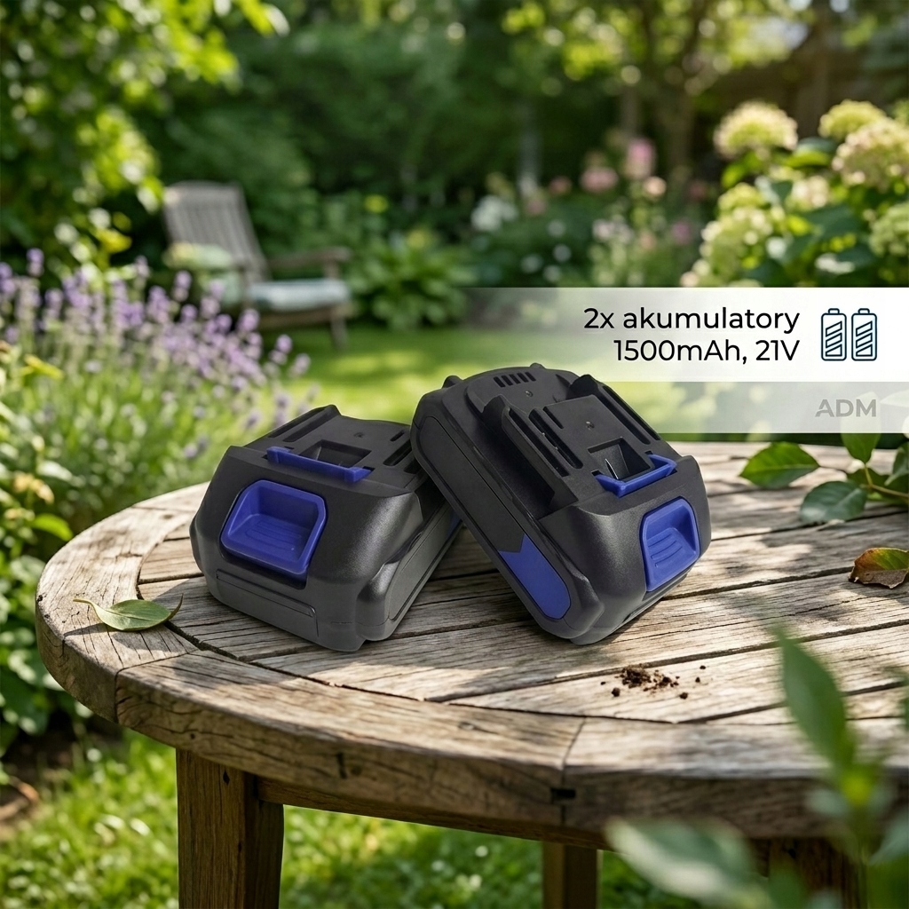🔋 2 akumulatory 21V – pracuj bez przerw, korzystając z zapasowego źródła energii.