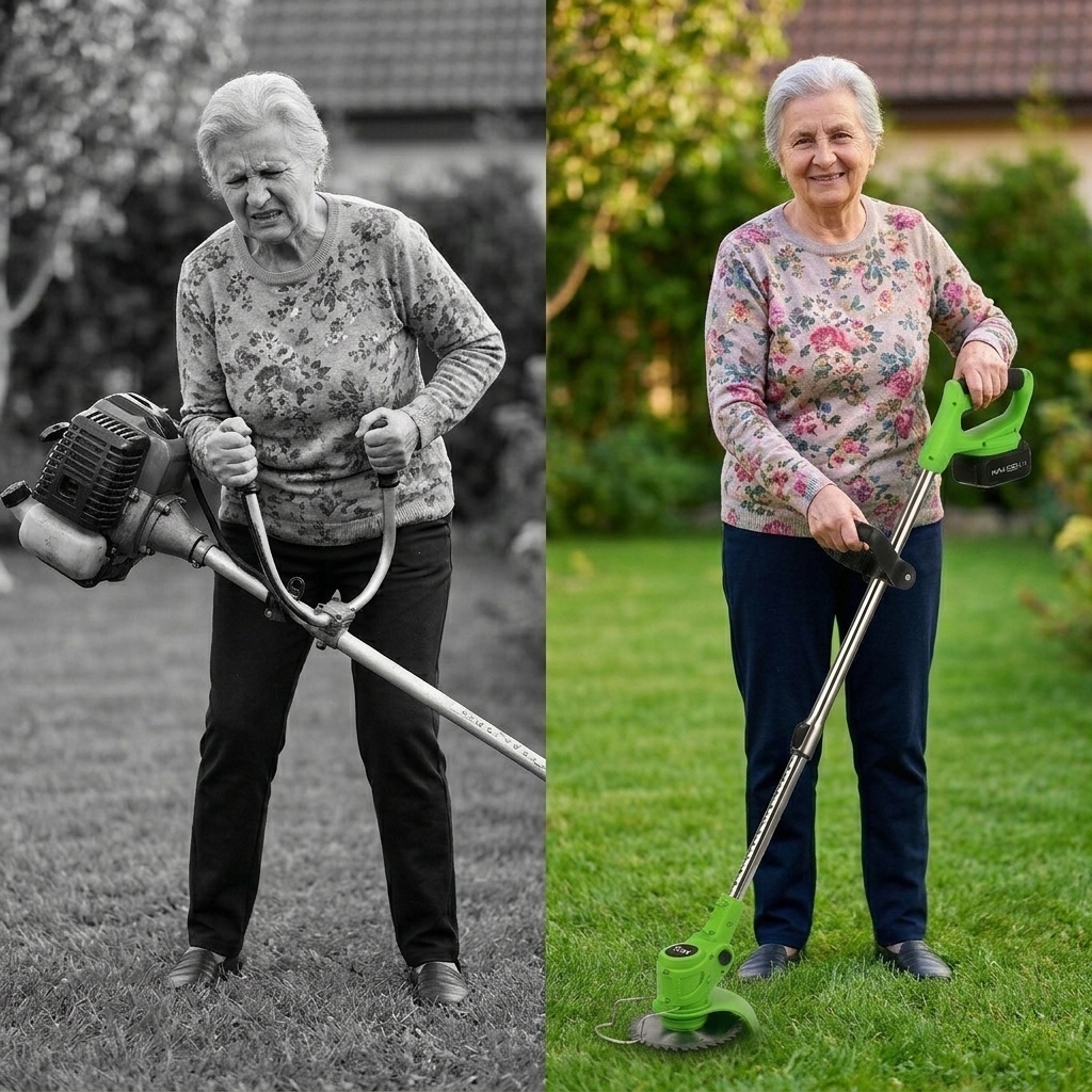 😨 Tradycyjne kosiarki są ciężkie, głośne i trudne do manewrowania w narożnikach.