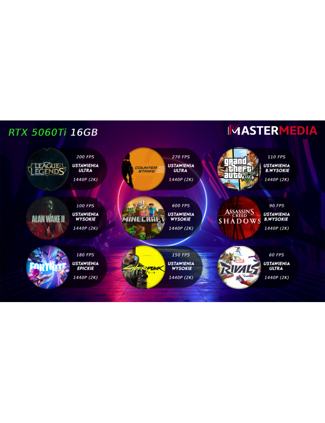 • Karta Graficzna: GeForce RTX 5060Ti 16GB